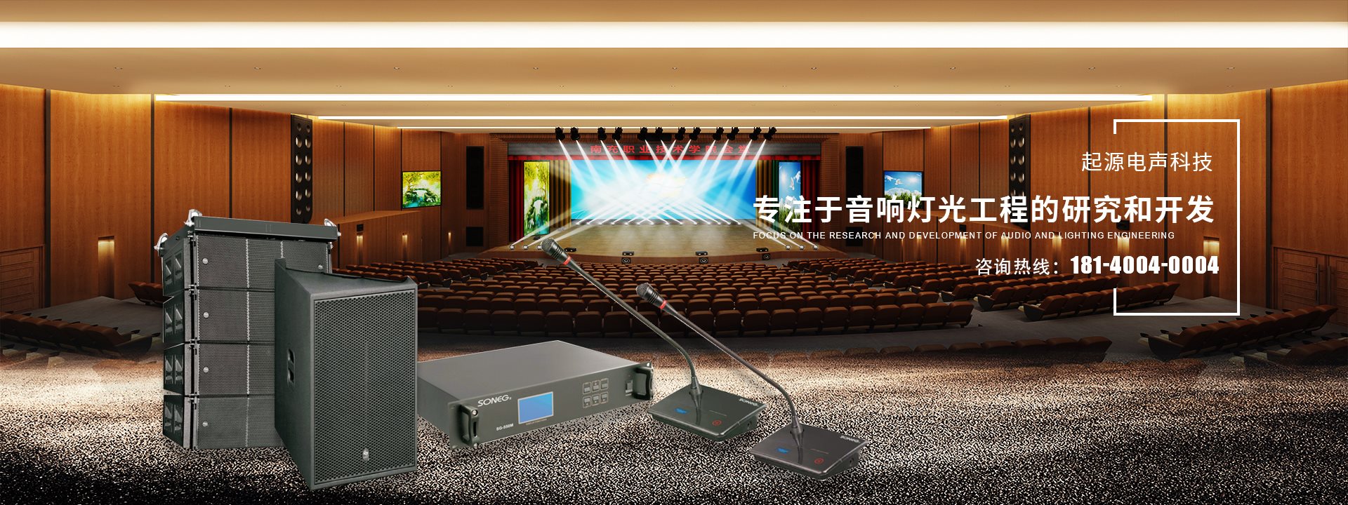 起源電聲科技專注于音響燈光工程的研究和開發(fā),承接大型舞臺燈光音響系統(tǒng)、智能化會議音響系統(tǒng)、KTV音響工程、家庭影院、廣播工程